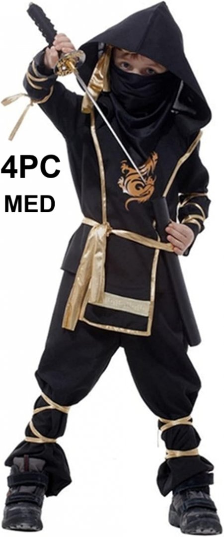 4pc kids gold dragon ninja Halloween costume cosplay - med - black/gold