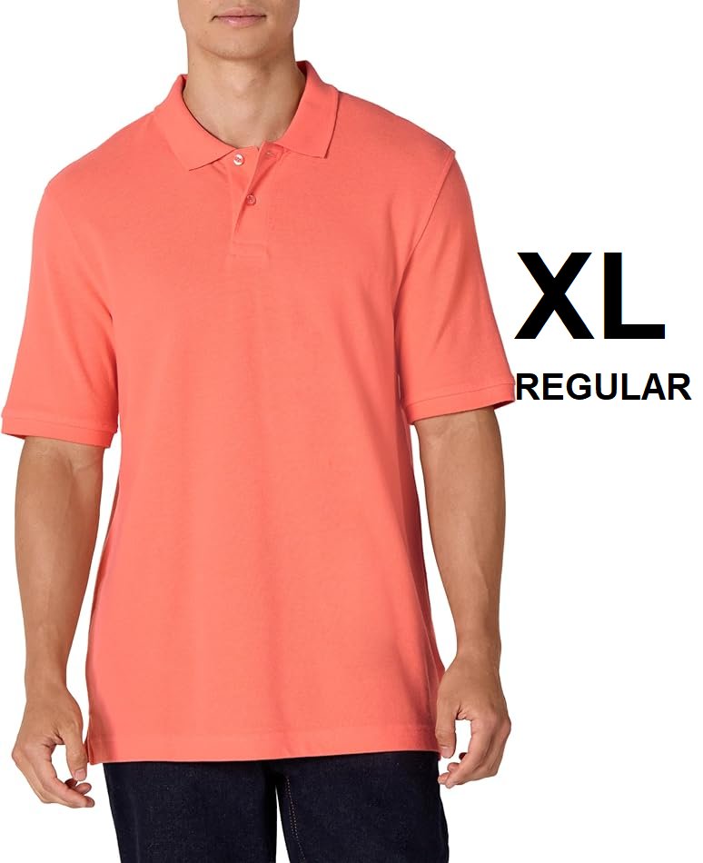 mens amazon essentials standard fit cotton pique polo shirt- extra large regular -coral orange (MODEL: F16AE40000)