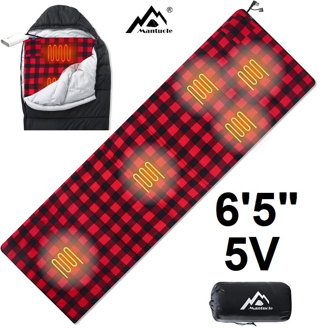 MANTUOLE Heated Sleeping Bag pad, USB POWER SUPPLY, 5V - 6FT 5" - RED PLAID