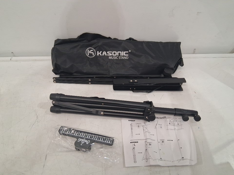 kasonic 2 in 1 dual-use music stand for sheet music, includes music sheet clip and carrying bag - 28.7" tall - black (model: ms-102a)