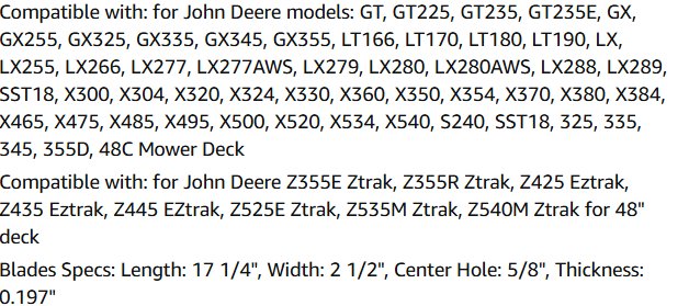 3pk Dibanyou lawn mower deck blades for john deere series lawnmowers - 17.25" - Black