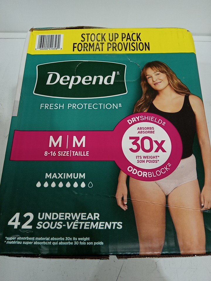 42PK WOMENS DEPEND fresh protection UNDERWEAR - MAXIMUM ABSORBENCY - MEDIUM - BLUSH (MODEL: 5165602)