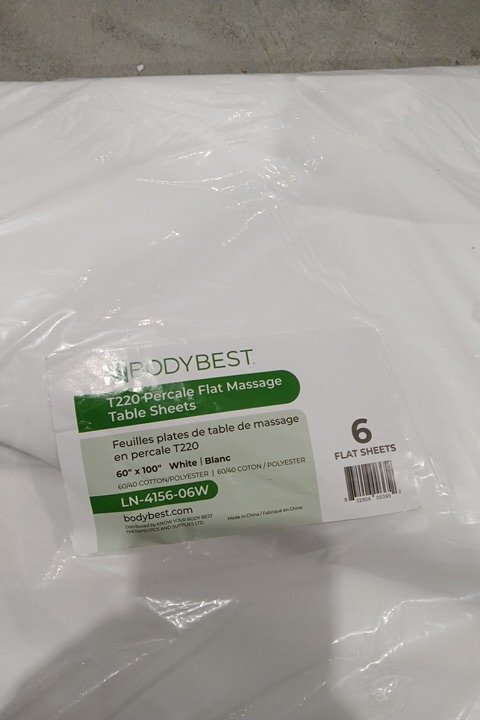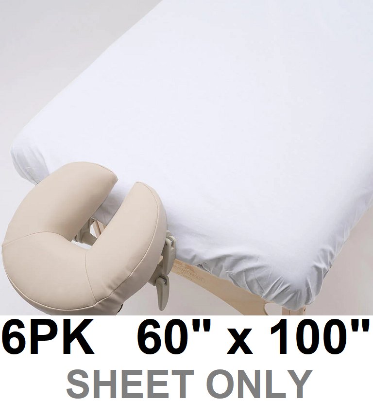 6PK BODYBEST MICROFIBER SHEET SET FOR MASSAGE TABLE - 60" x 100" - white (model: LN-4156-60w)