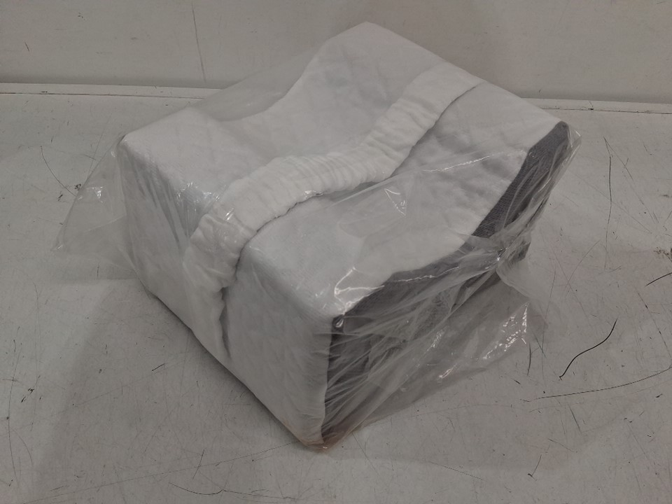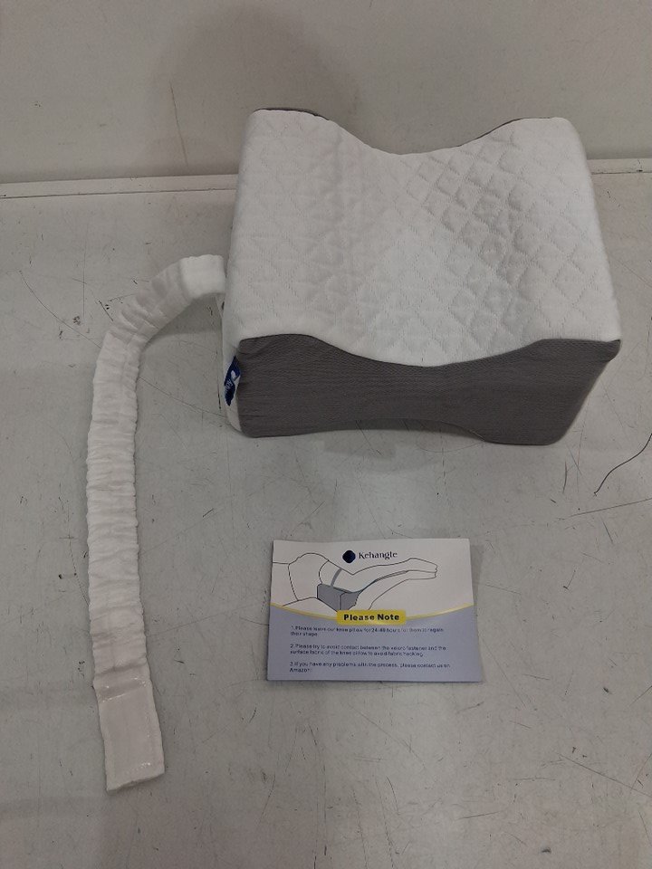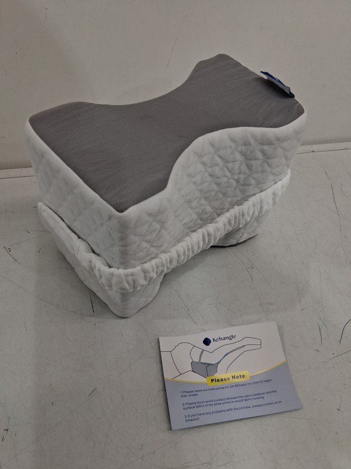 Kehangte Memory Foam Ergonomic Knee/Leg Pillow for Side Sleepers with Velcro Strap and Removable Cover - White/Grey