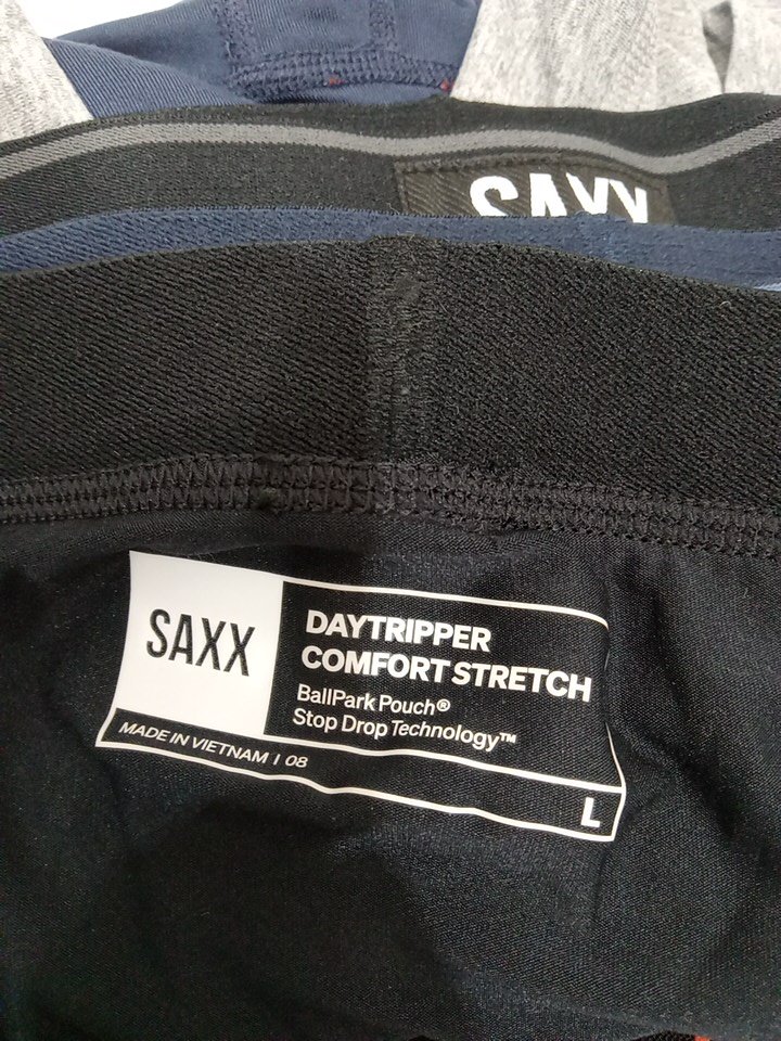 3PK mens saxx Daytripper Comfort Stretch Boxer Briefs - Large - Black/Blue/Grey