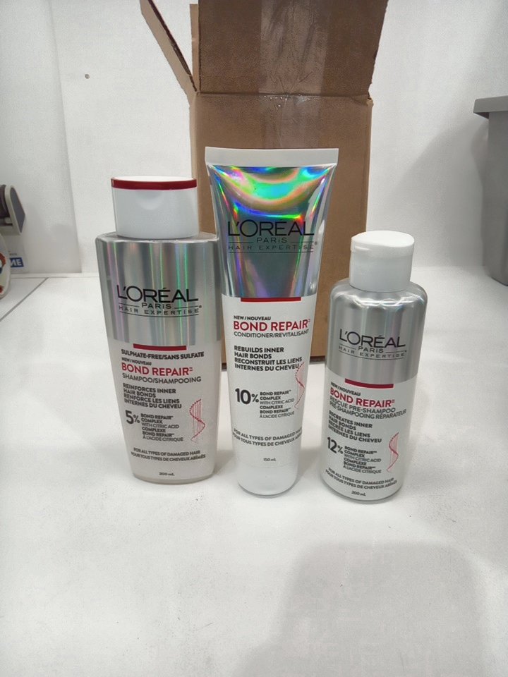 3pc l'oreal bond repair set - pre-shampoo, shampoo, and conditioner - 200ml, 200ml, 150ml