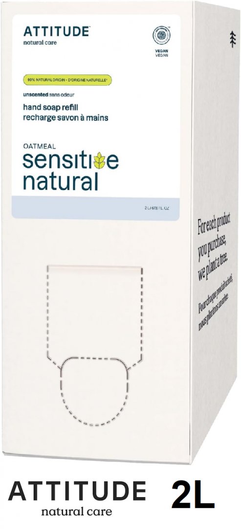 attitude natural care sensitive natural hand soap refill - 2l - unscented