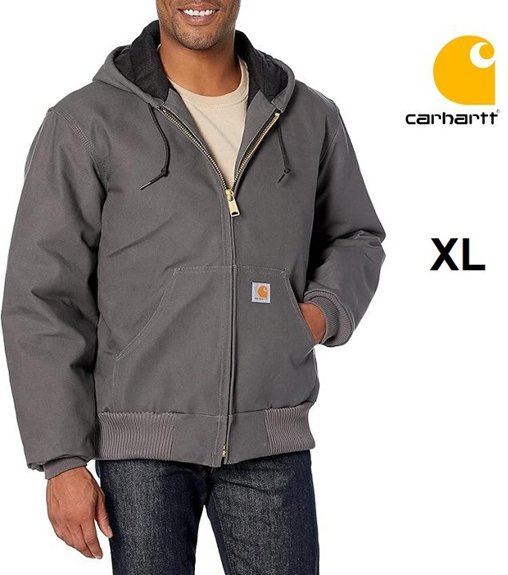 men's carhartt loose fit firm duck insulated flannel lined hooded active jacket - XL - Grey (model: 0j0140-M)