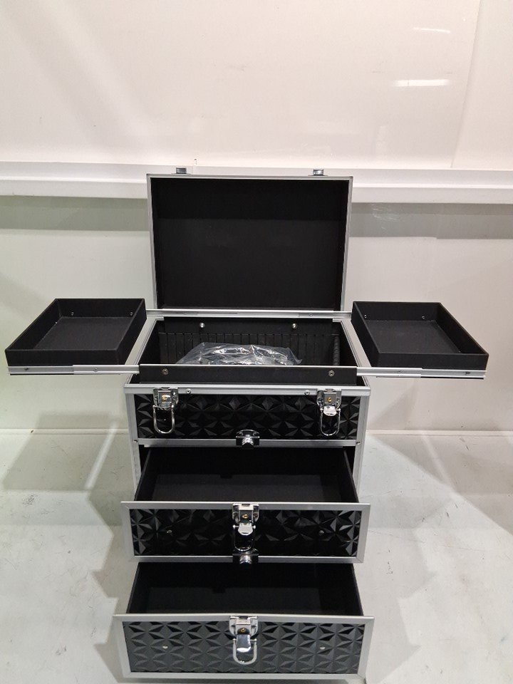 Professional Rolling Makeup Case with handle - 19.29" x 13.39" x 9.37" - black/silver
