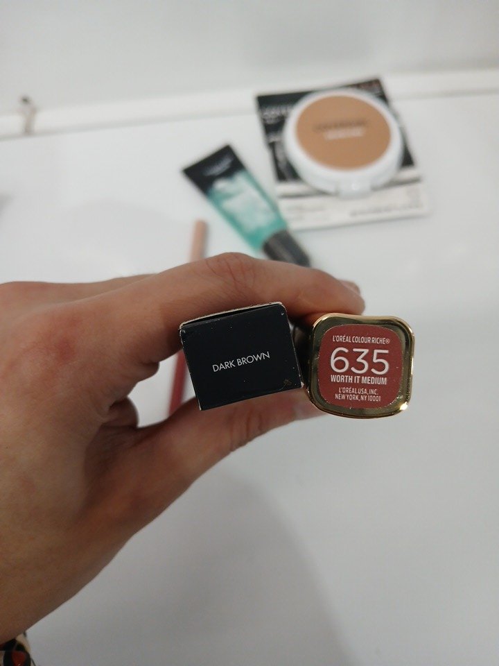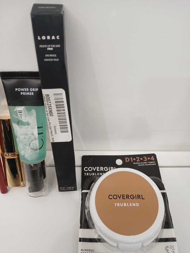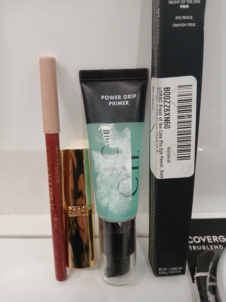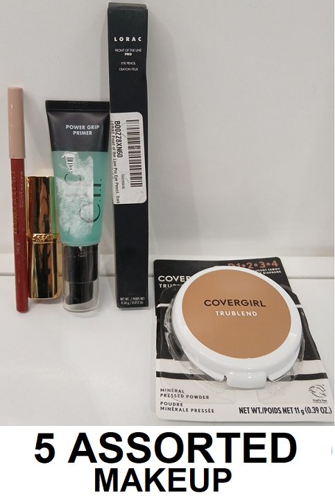 5 assorted makeup - ASSORTED COLORS, TYPES AND BRANDS - primer/ lipstick/ powder/ lip liner/ eye pencil