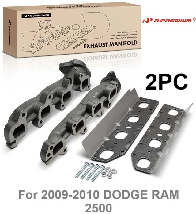 2pc A premium Driver AND Passenger Exhaust Manifold with Gasket for 2009-2010 Dodge Ram 2500