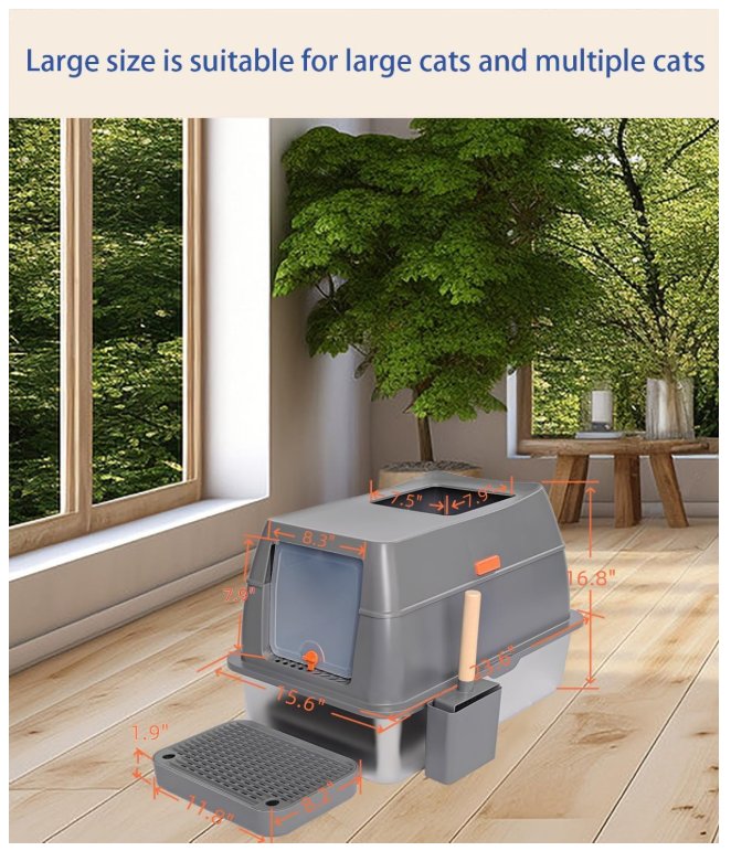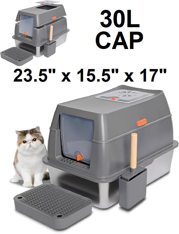 ‎FOXORU Ultimate XL Stainless Steel Litter Box with Lid - 30L capacity - stainless steel - (model: AEXL-1)