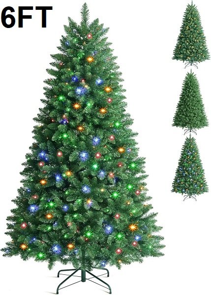 sinchereu prelit artificial christmas tree with metal stand and hinged branches - 6ft - 1200 branch tips - multicolour (model: JFI-300RBC-O01)