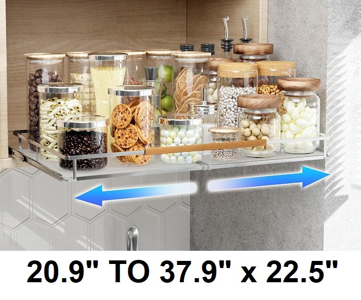 tAIHEIS BOTTOM MOUNT PULL OUT EXPANDABLE CABINET ORGANIZER - 20.9" TO 37.9" x 22.5" - SILVER