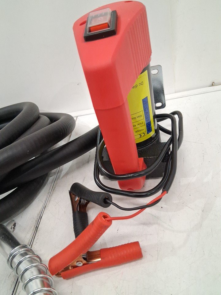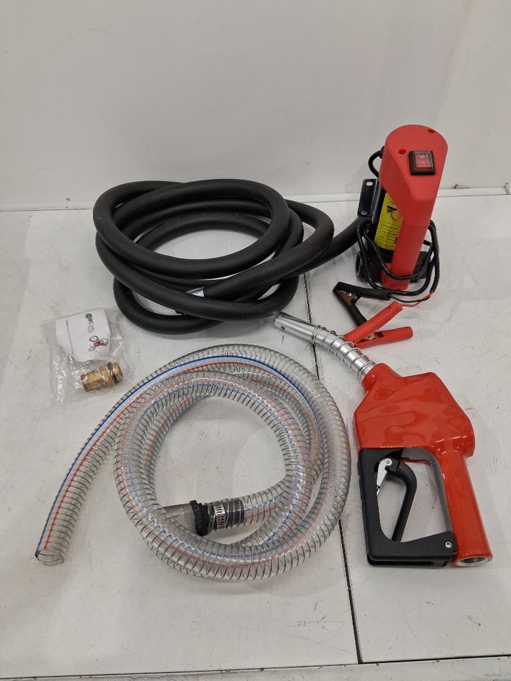 vevor portable diesel/oil transfer pump kit with auto shut off nozzle -12v - 13FT OUTLET HOSE - red/black (model: DCFD40A)