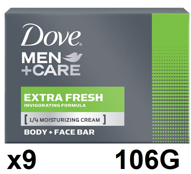 9 MEN'S DOVE +CARE MOISTURISING BODY & FACE BAR SOAP - 106G/BAR - EXTRA FRESH SCENT