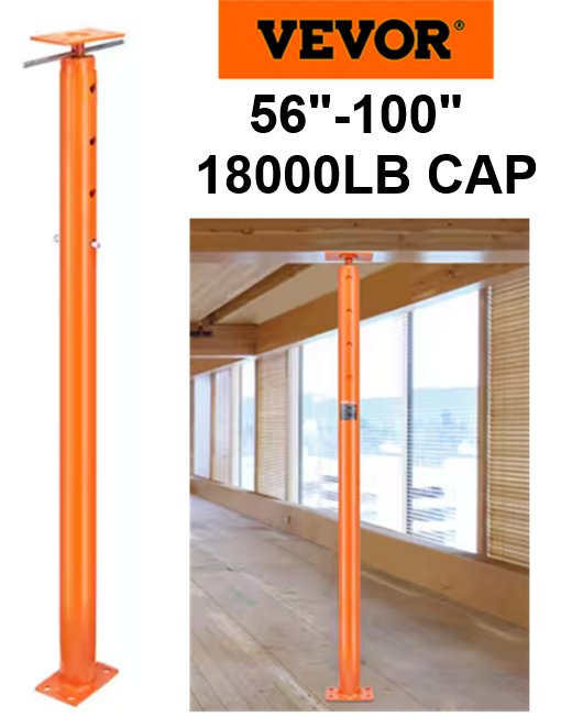 Vevor Adjustable House Floor Jack Support Pole - 54" - 150" / 11200LB Capacity - Orange