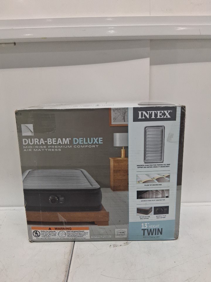 INTEX DURA-BEAM SERIES DELUXE COMFORT PLUSH MID RISE AIRBED WITH INTERNAL ELECTRIC PUMP - 13" HEIGHT - TWIN - (MODEL: AP619D/67765ED)