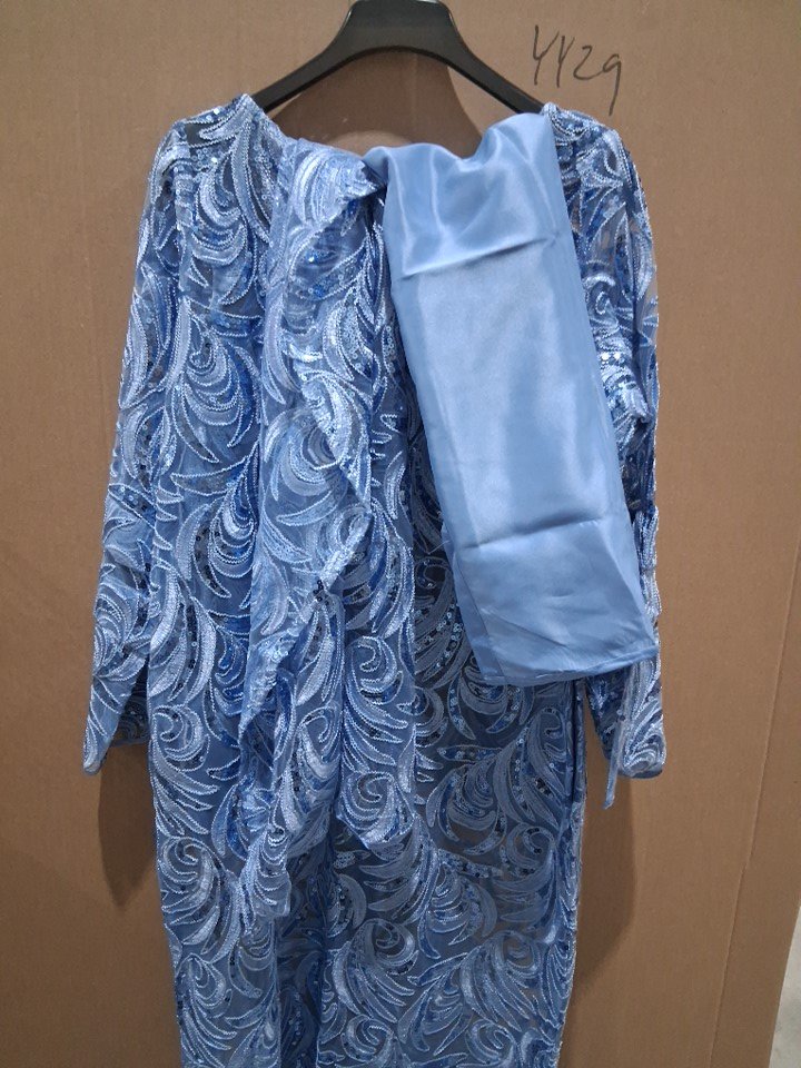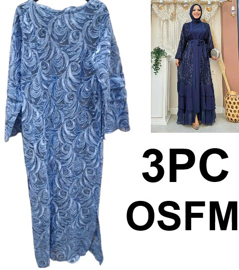 3pc TRADITIONAL kaftan dresses with matching fabric wrap - osfm - blue sparkle