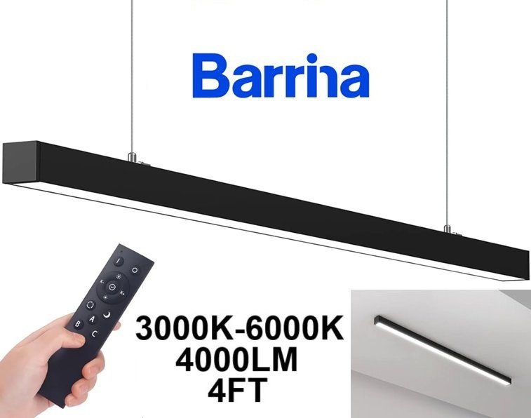Barrina LED Linear hanging/flush mount Shop Light - 4ft - 3000k-6000k - 4000lm - 40w - black - (Model: XA4L40)