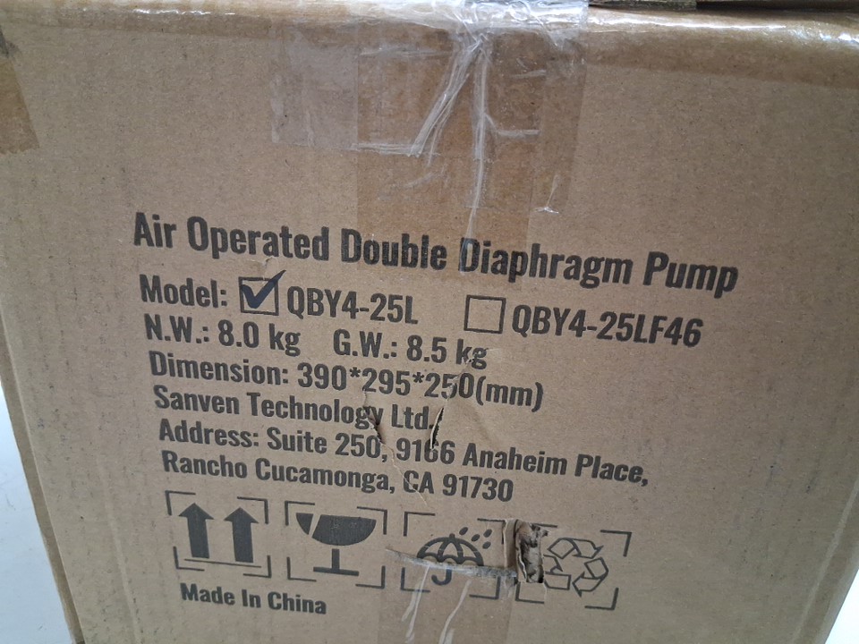 VEVOR AIR OPERATED DOUBLE DIAPHRAGM PUMP, 1" INLET OUTLET FOR CHEMICAL INDUSTRIAL USE, 35 GPM, MAX 120 PSI, BLACK, (MODEL:QBY4-25L)