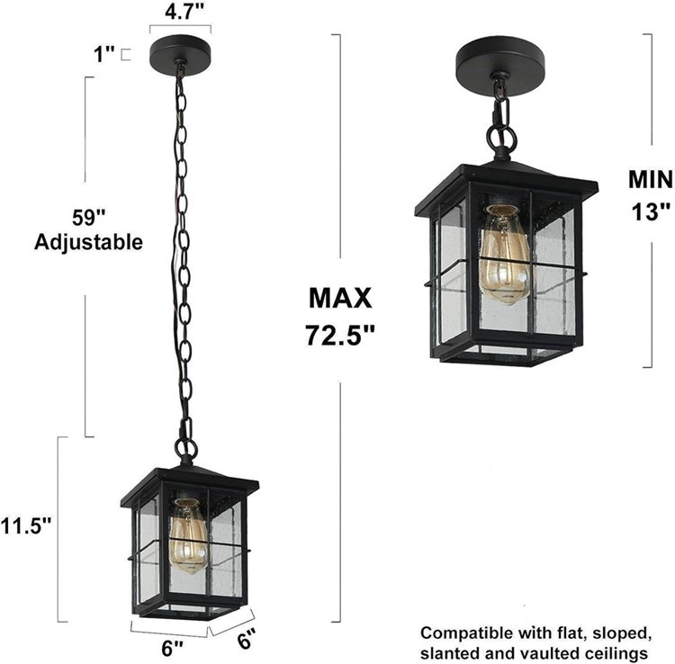 GEPOW Outdoor Farmhouse Pendant Light Fixture With Adjustable Chain - Black - (Model: A04254P)