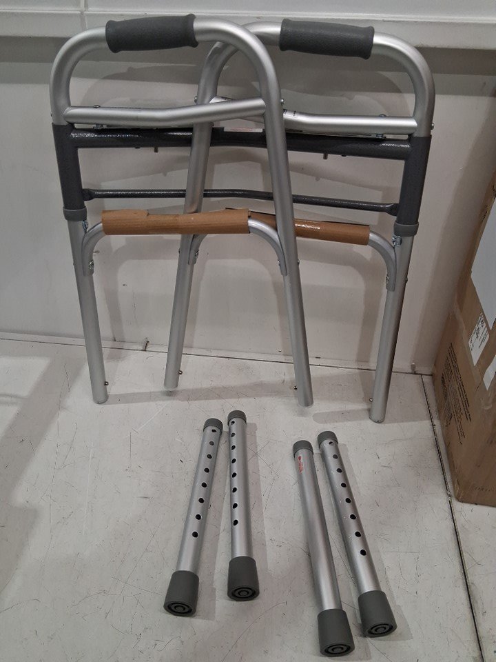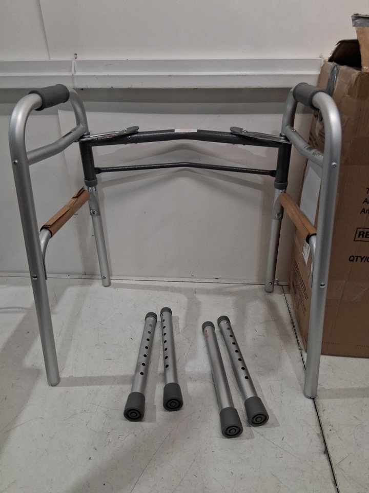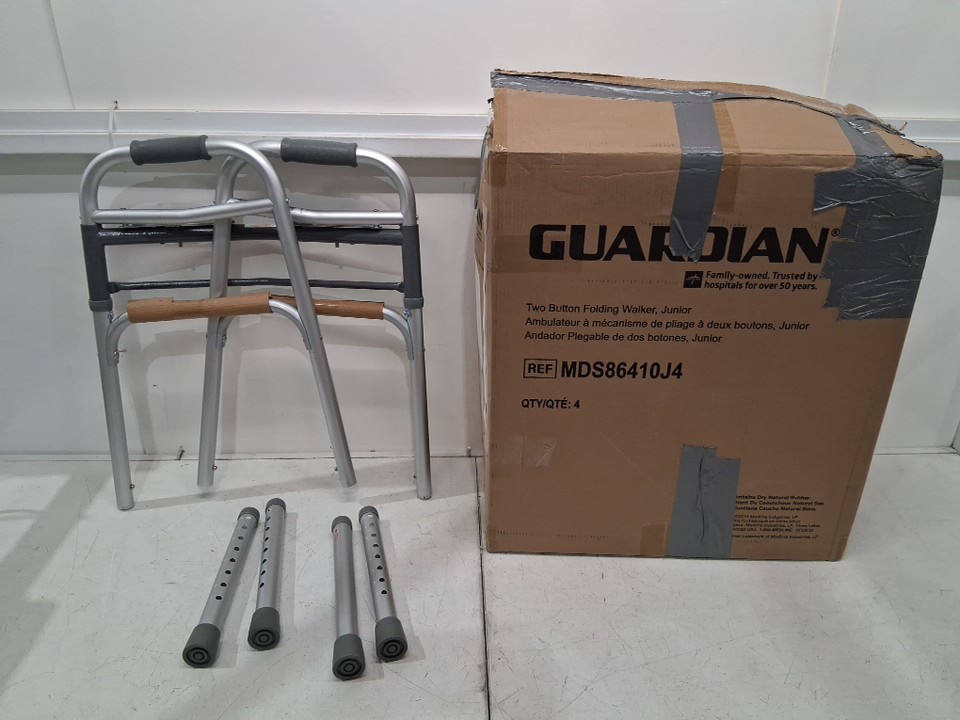 MEDLINE GUARDIAN adjustable height TWO-BUTTON FOLDING WALKER JUNIOR - 25"-32" - grey (model: MDS86410J4)