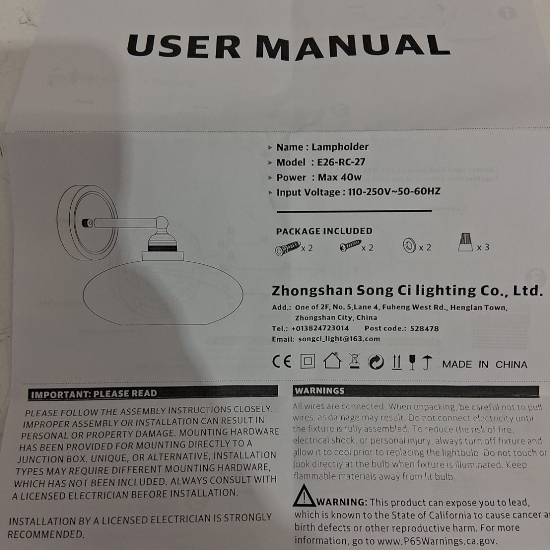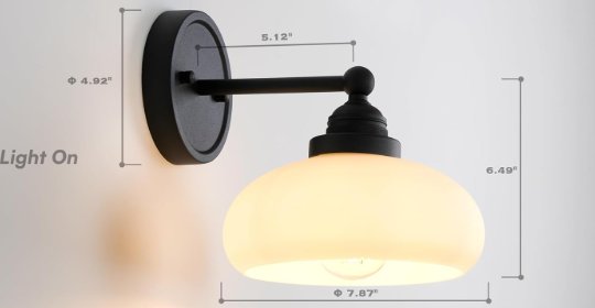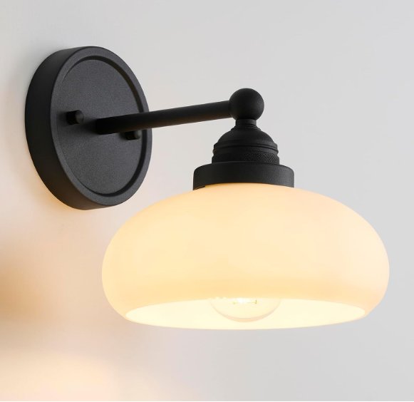 songcilt vintage sconce with milk white glass shade - black/white (model: ‎SC-LWT305B1)