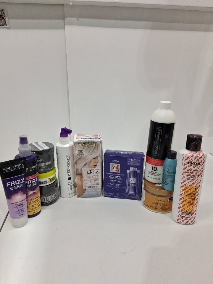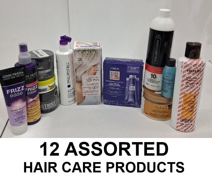 12 ASSORTED HAIR CARE PRODUCTS - ASSORTED SIZE TYPES AND BRANDS