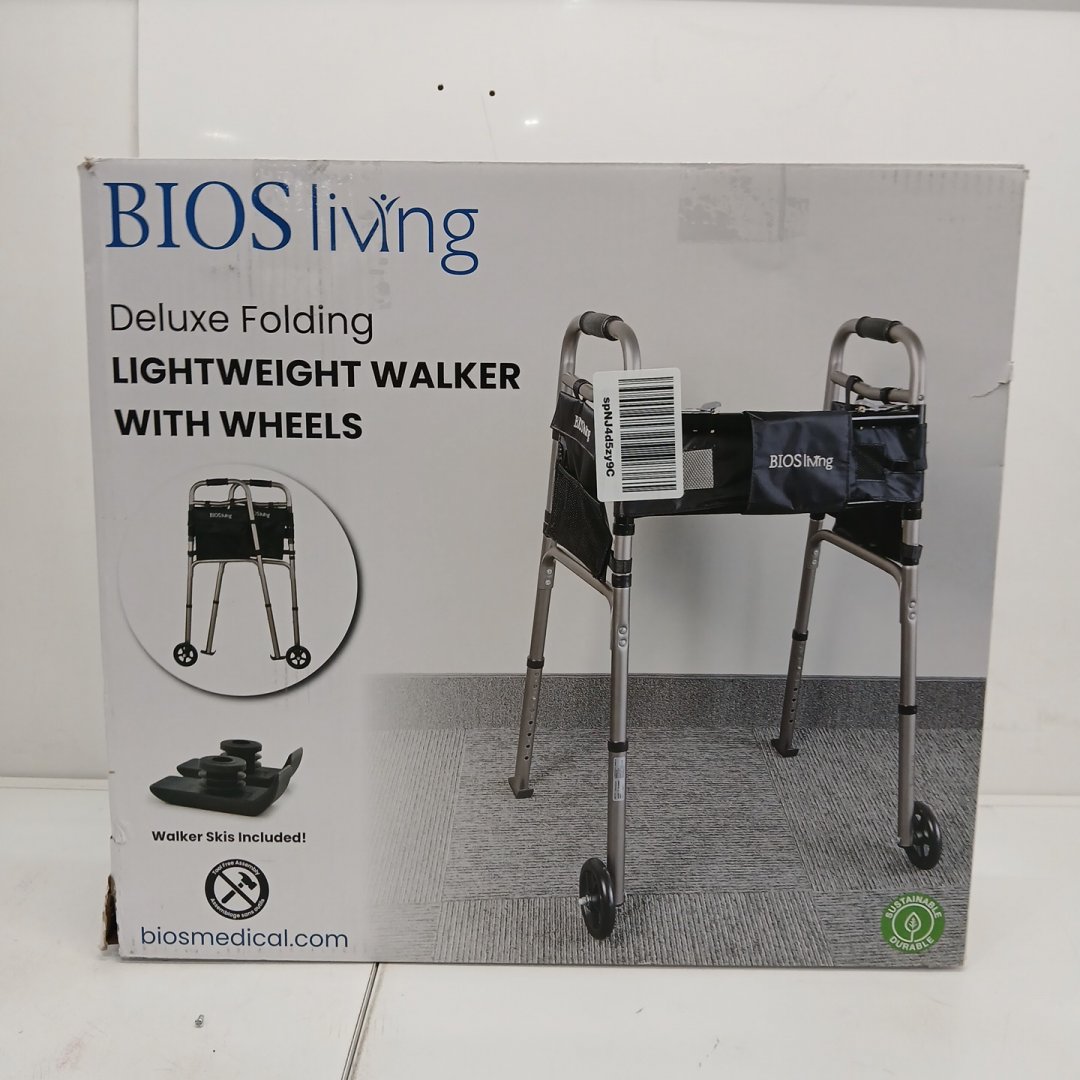 BIOS LIVING LIGHTWEIGHT DELUXE FOLDING WALKER WITH WHEELS - SILVER/BLACK (MODEL: 56023)