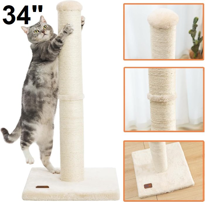 karolpar cat scratching post tree - 34" - beige - (model:YY101-W)