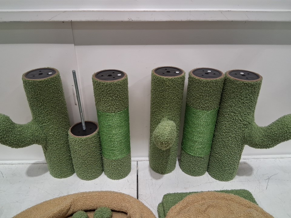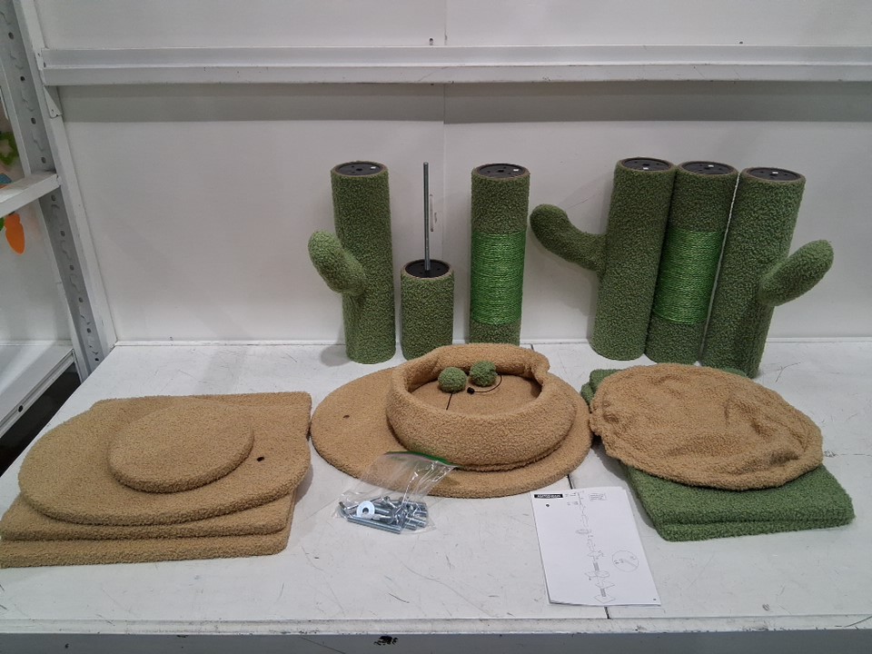tall cat tower adjustable cactus cat tree with hammock and soft perch - 100" - green (model: AMT0246GN)
