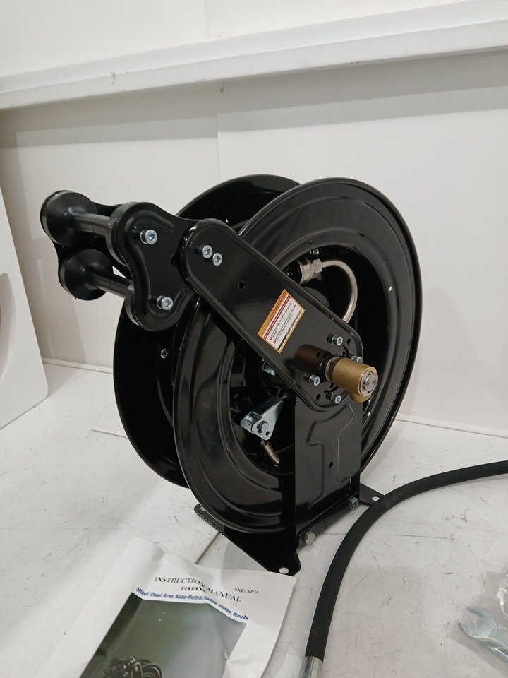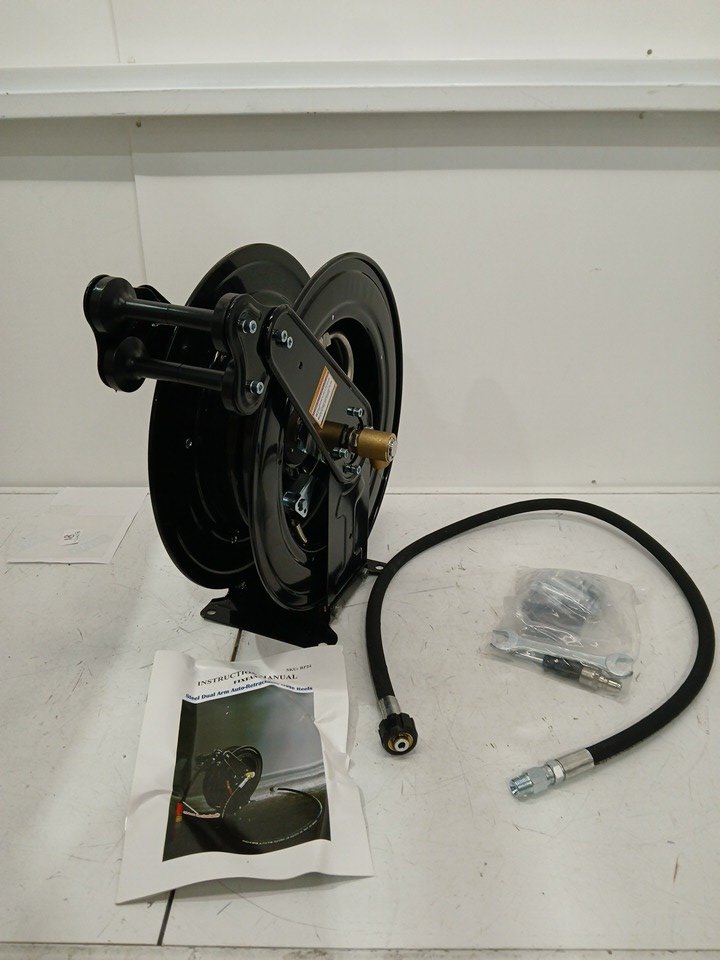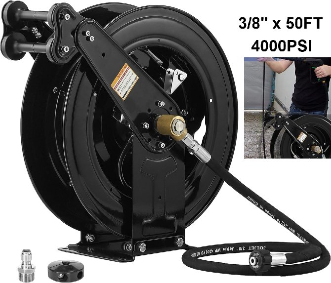 FIXFANS High Pressure Washer Hose Reel - Steel Dual Arm, Auto-Retractable - for Water/Air/Oil, 3/8" X 50FT, 4000PSI