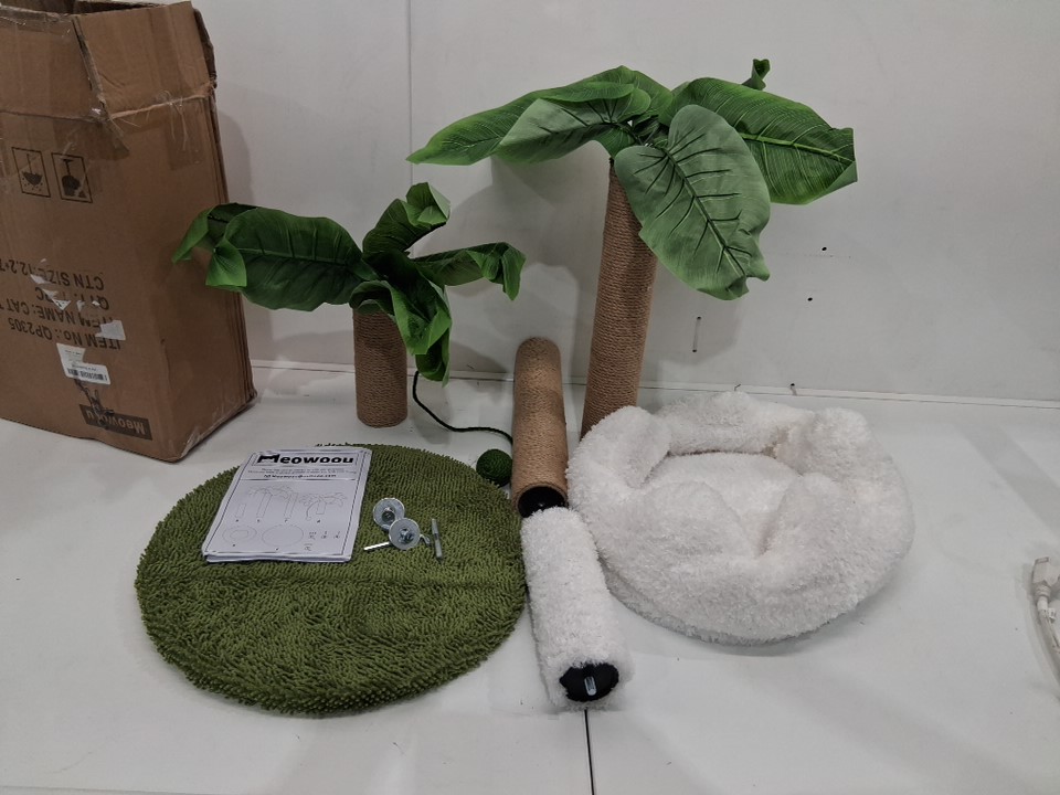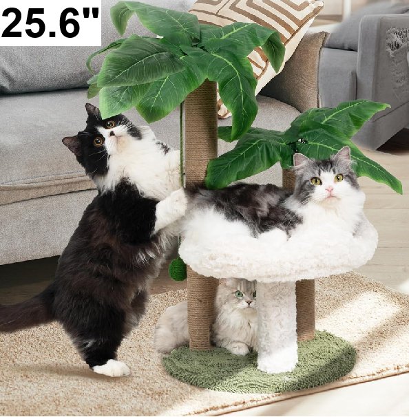 Meowoou Cat Scratching Post Palm Tree with Bed AND HANGING BALL - 25.6" -GREEN/BROWN/WHITE (MODEL: QP2305)