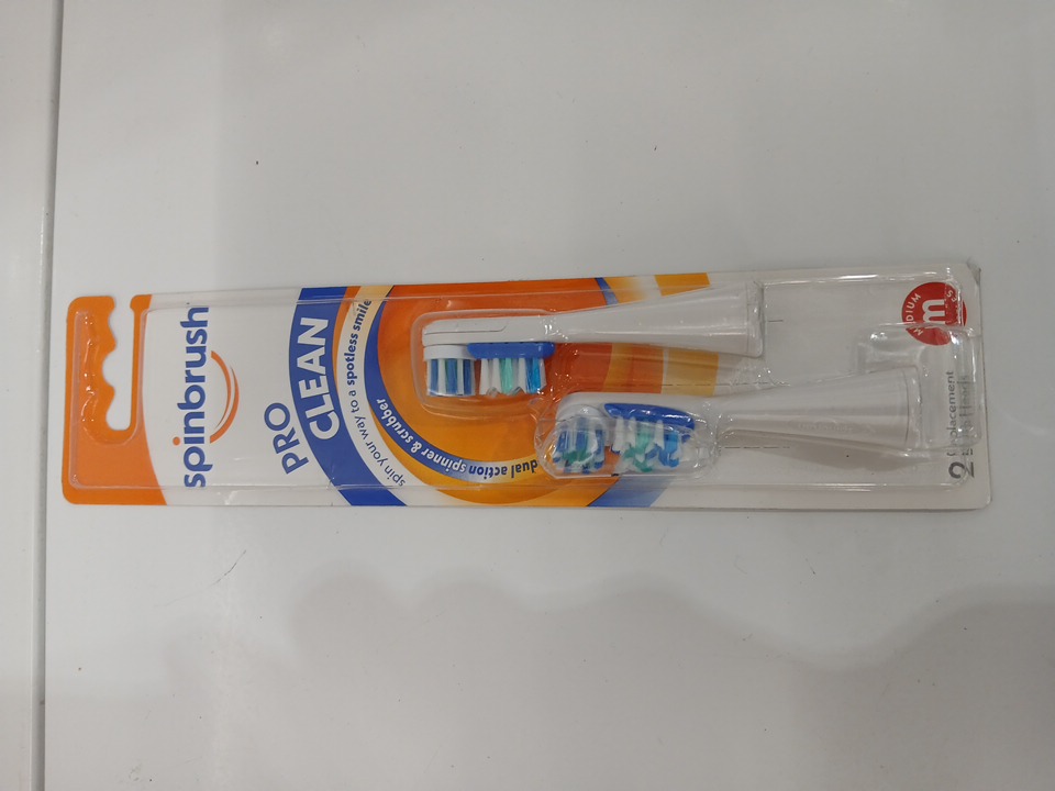 2PK Spinbrush Pro Clean Replacement Heads - MEDIUM Soft Bristles - WHITE