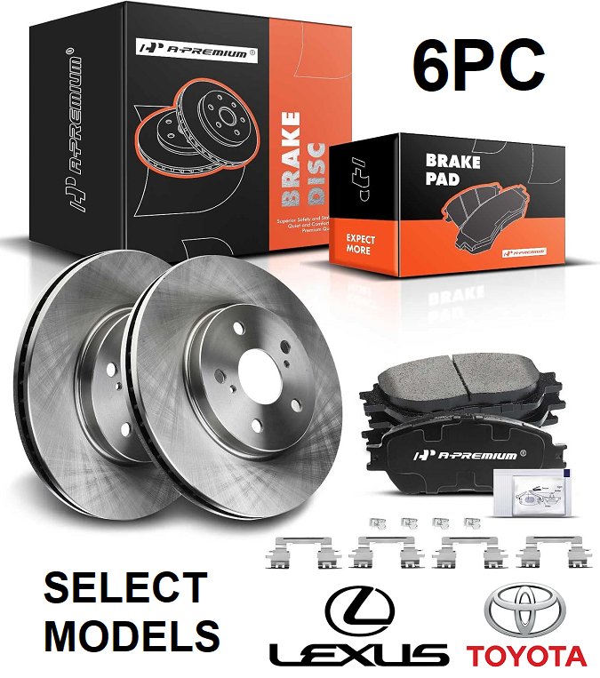 6PC A-PREMIUM 11.65 in (296 mm) Front Vented Disc Brake Rotors + Ceramic Pads Kit Compatible with Select Lexus and Toyota Models