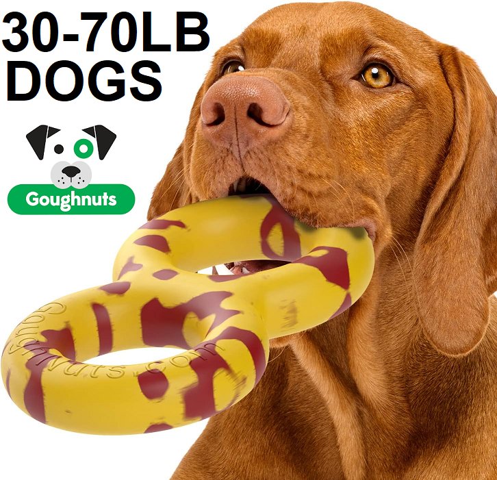 GOUGHNUTS VIRTUALLY INDESTRUCTIBLE DOG CHEW RING TOY FOR AGGRESSIVE CHEWERS - FOR DOGS 30-70LBS - orange/yellow