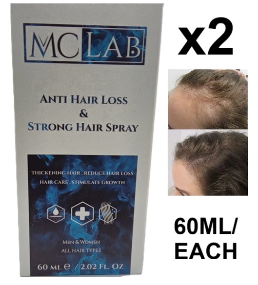 2 adults MCLAB anti hair loss & strong hair spray - all hair types - 60ml/each