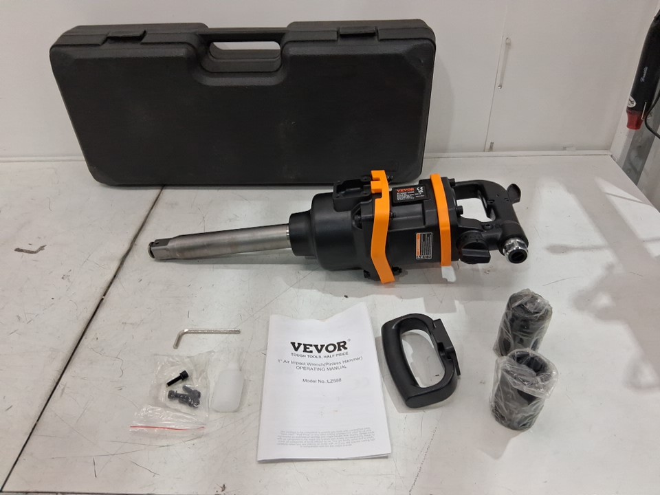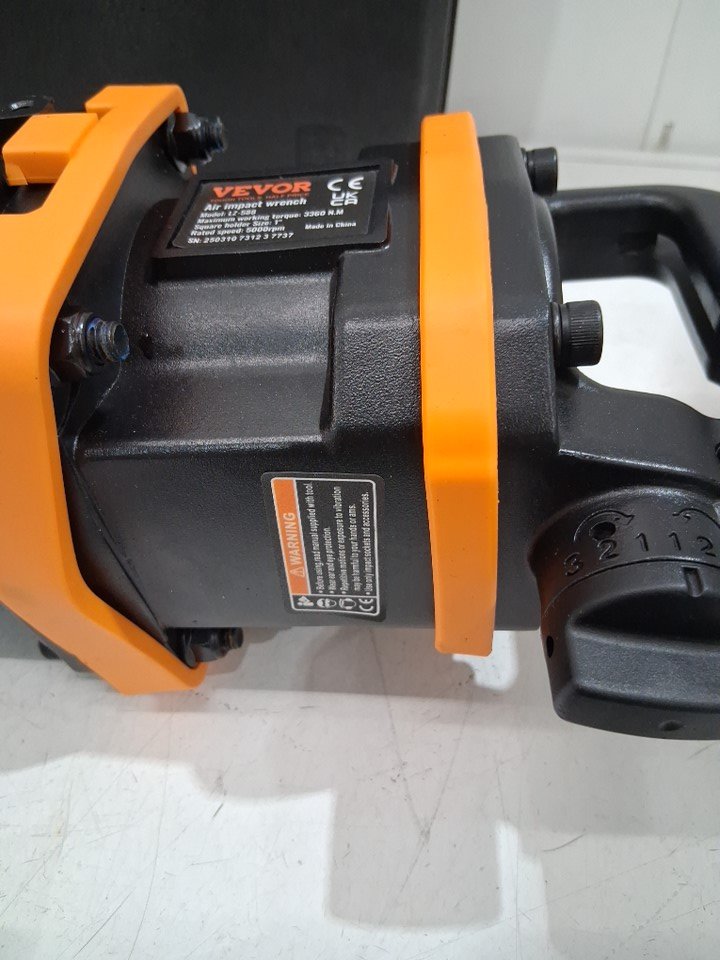 vevor heavy duty pneumatic air impact gun wrench with carrying case - 1" - 8" extended anvil - up to 3360nm - black/orange (model: lz-588)