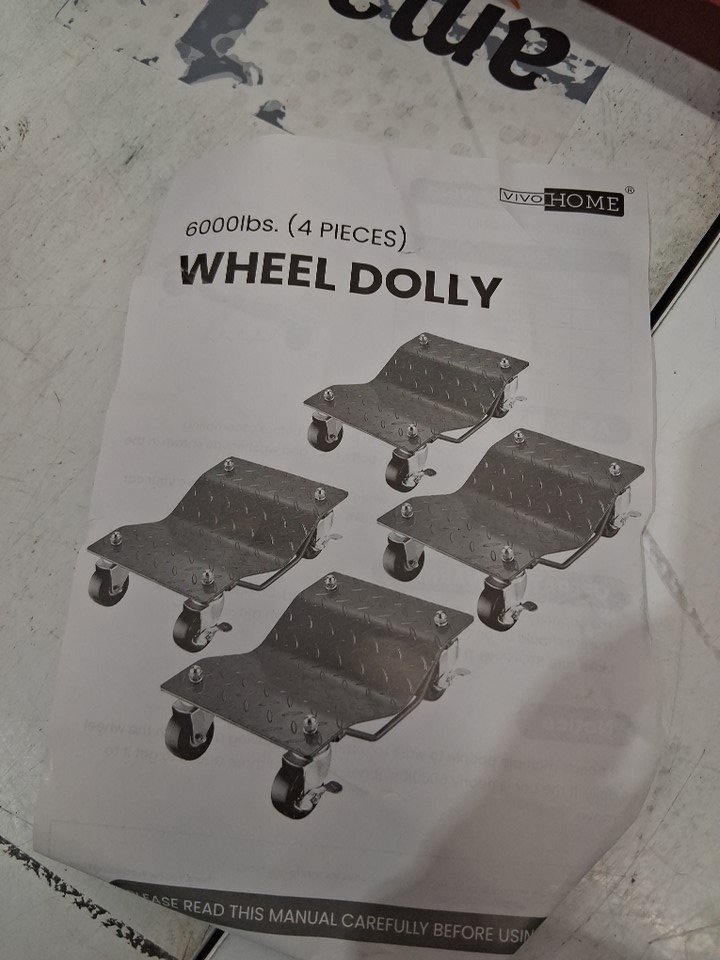 VIVOHOME Heavy Duty 4 Tire Wheel Dolly Car Stakes 6000lbs Capacity - Red (MODEL: VH341)