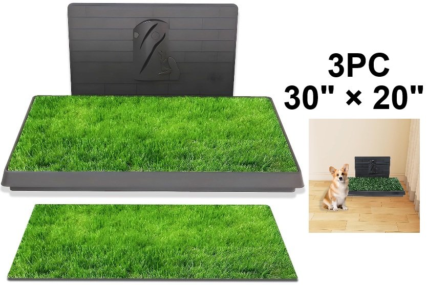 3pc OCKYOOZ dog Artificial Grass Pee Pad Tray, for Small and Medium Dogs-30"×20" -green/black