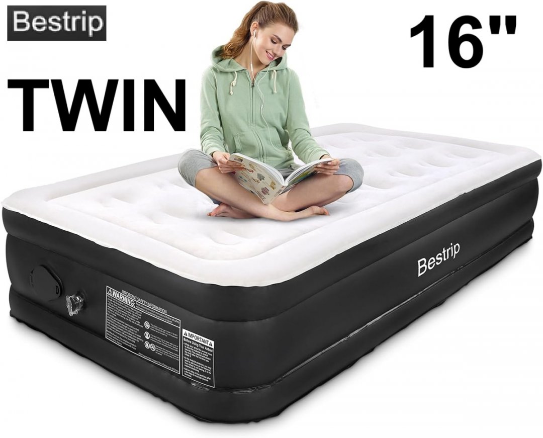 Bestrip Inflatable Blow up Air Mattress Bed with Built-in Pump with Fast Inflation/Deflation - 16" - Twin - Black (Model: BP900)