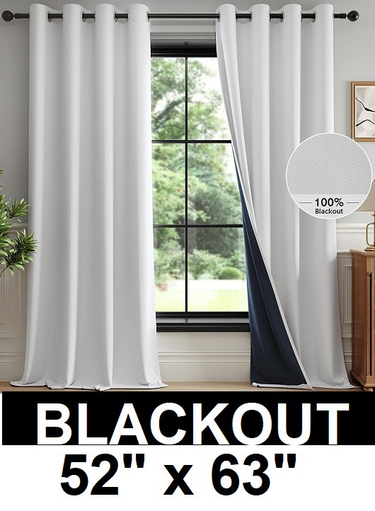 (2 panel) FMfunctex blackout curtains with grommets - 52" x 63" - WHite