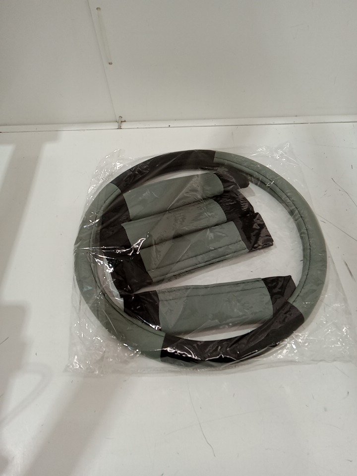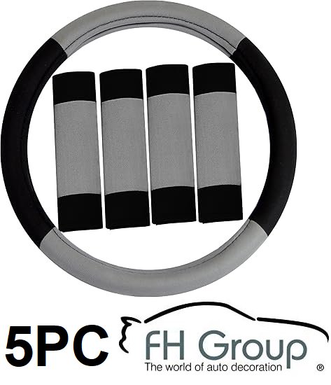 5PC FHGROUP STEERING WHEEL COVER WITH SEATBELT STRAP COVERS - 15" - black/grey