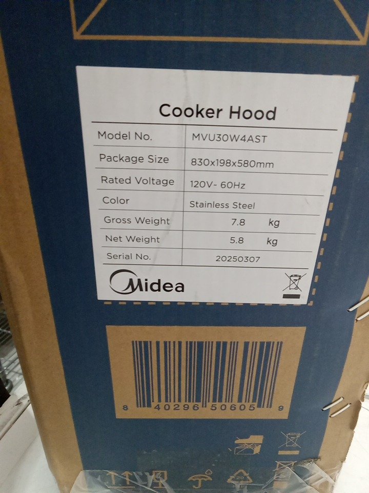 midea under cabinet convertible slim range hood - 30" - 60hz - 120v - 65dpa - silver (model: MVU30W4AST)