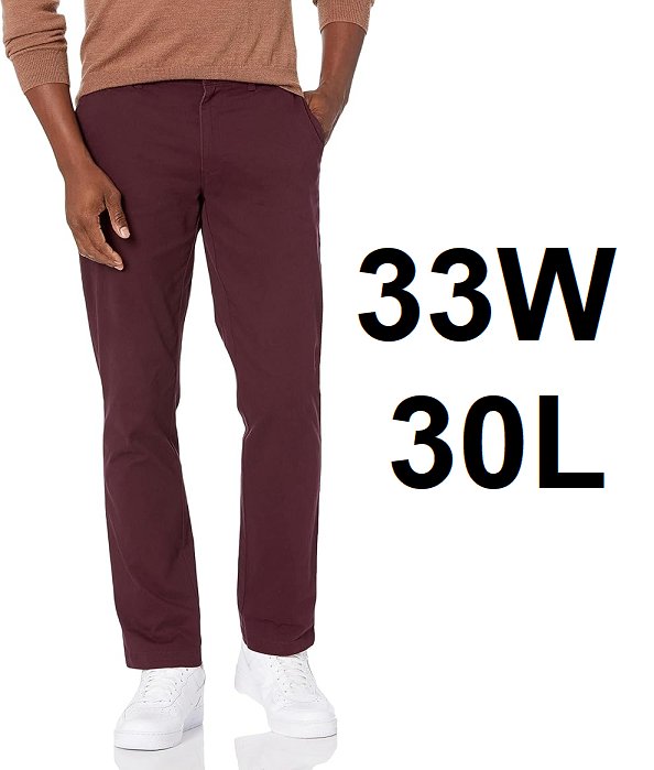 MENS AMAZON ESSENTIALS SLIM FIT CASUAL STRETCH KHAKI PANT - 33W X 30L - BURGUNDY (MODEL: MAE60012FL18)