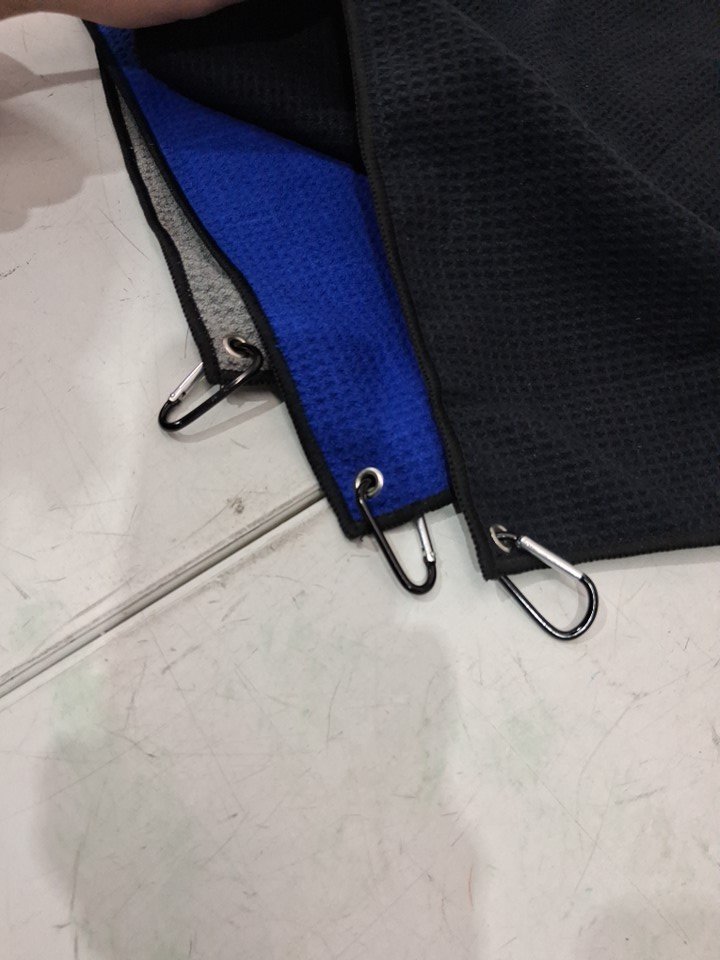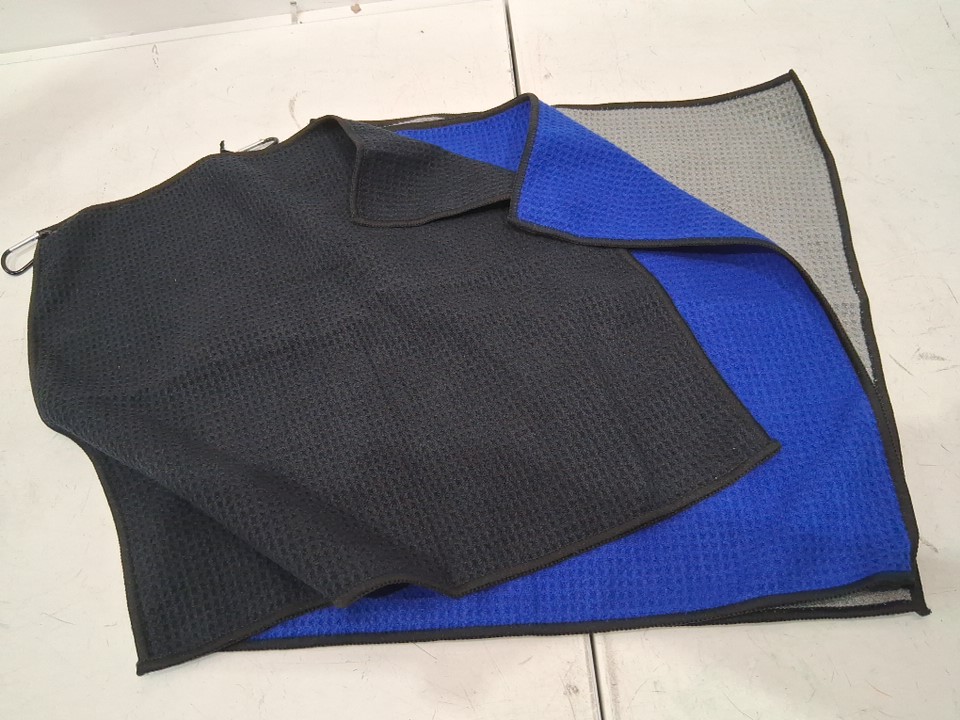 3pk microfiber golf towels with clips - 15" x 15" - black / grey / blue