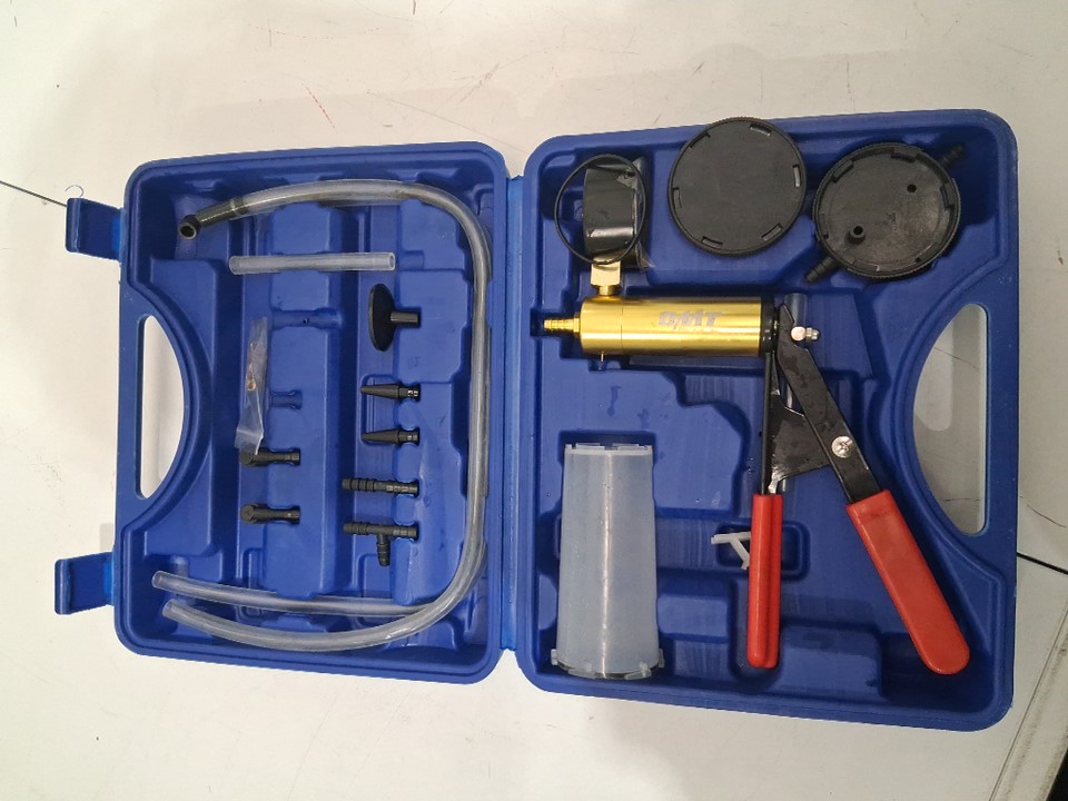 there is a small amount of brake fluid on some items, indicating previous use