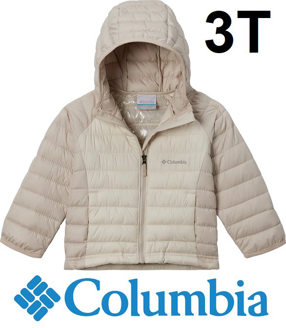 GIRL'S TODDLER Columbia Powder Lite II Hooded Jacket - Size 3T - Chalk dark stone