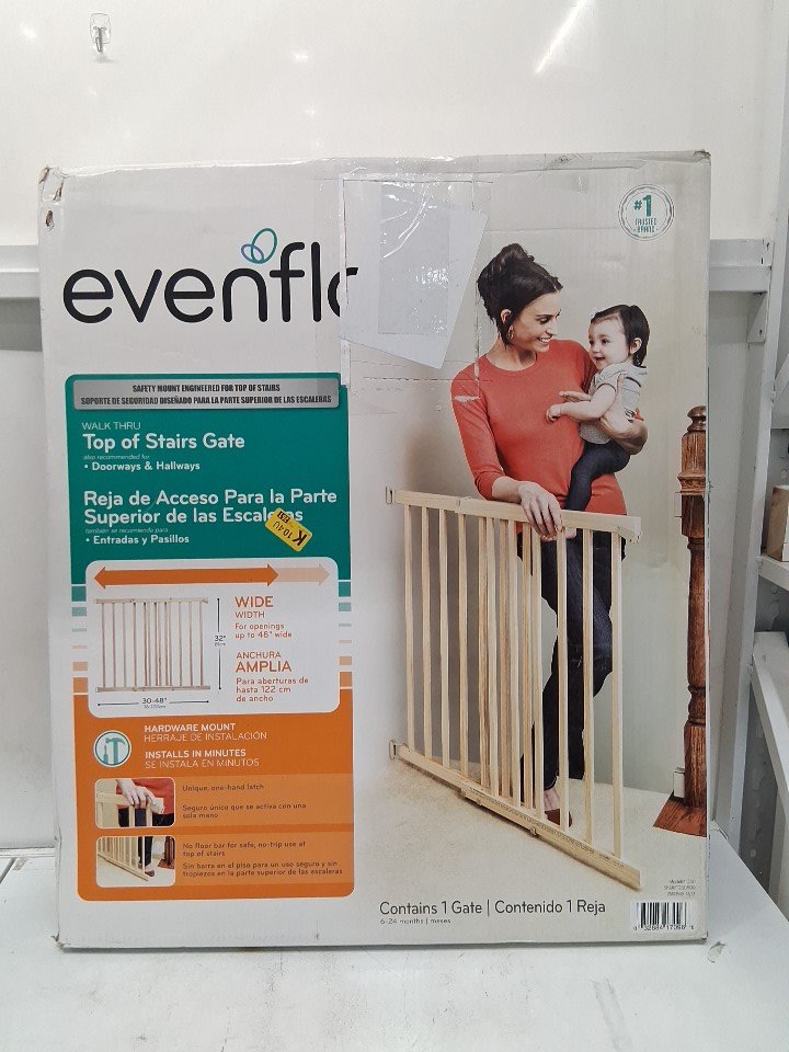evenflo Walk-Thru Top of Stairs baby and pet gate - 32'' x 30'' - 48'' - Natural Wood (model: 1050)